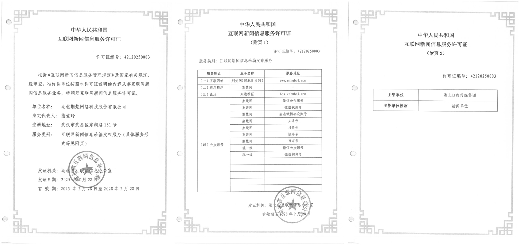 互聯(lián)網新聞信息許可證 4212025003 -