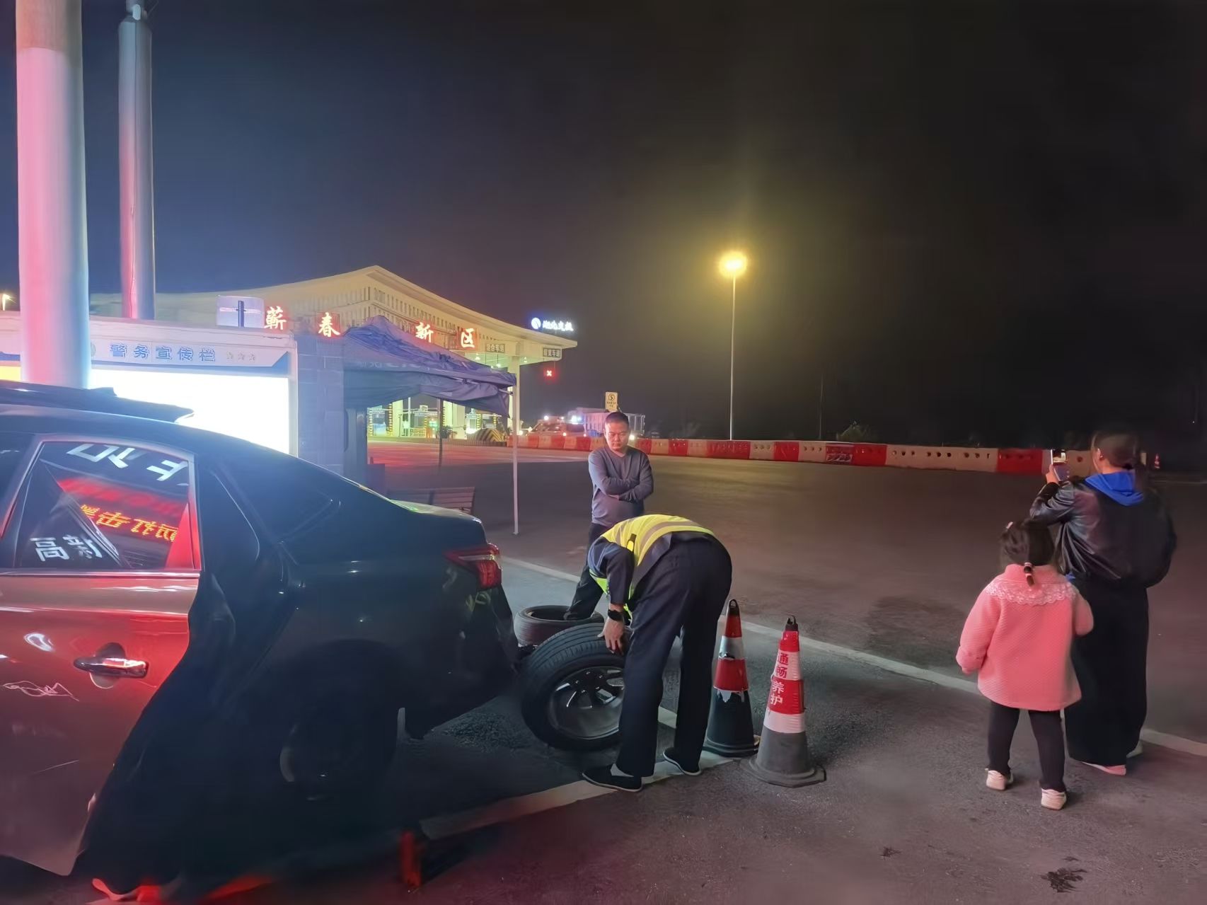 11月17日傍晚,湖北交投鄂東高速蘄春高新區(qū)收費(fèi)站入口處,王女士駕車帶兩名孩子返程黃石時(shí)遭貨車追尾,車輛受損無(wú)法行駛。危急時(shí)刻,收費(fèi)站工作人員及時(shí)介入,通過安撫情緒、安置孩子、更換備胎等暖心舉措,幫母子三人化解困境順利返程。