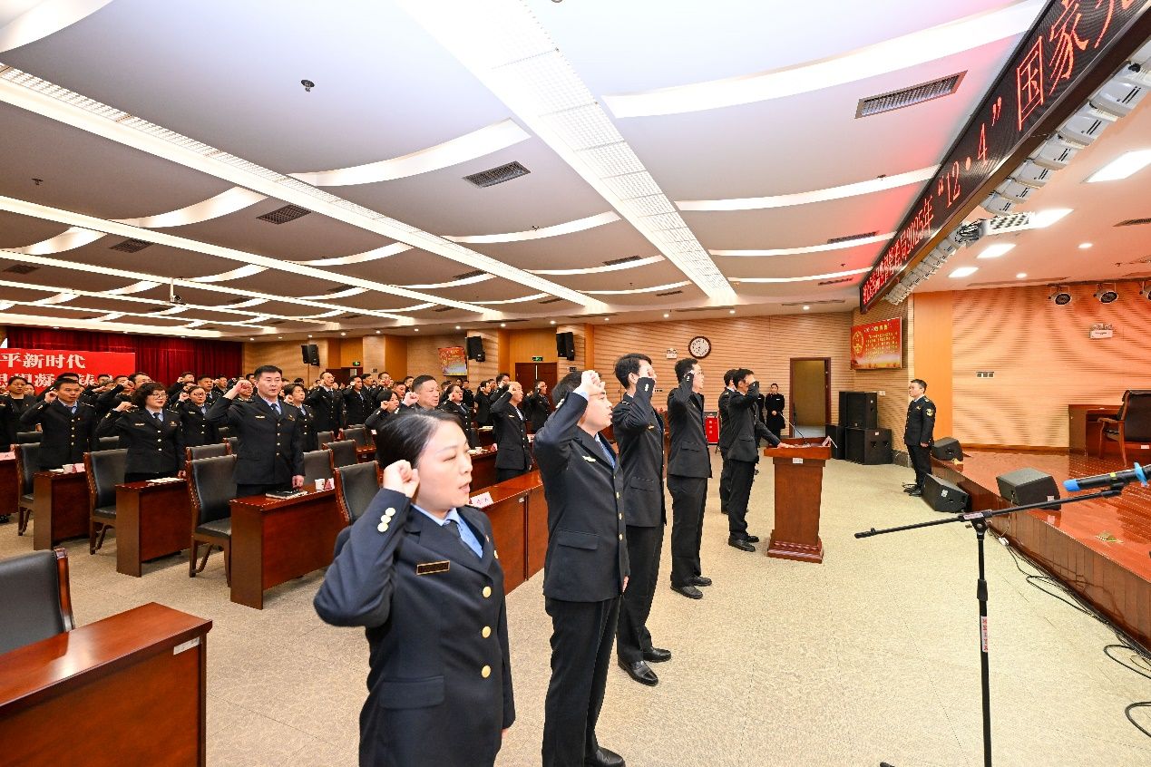省藥監(jiān)局黨組書記、局長(zhǎng)潘年松表示,憲法是國(guó)家的根本大法,是治國(guó)安邦的總章程,是黨治國(guó)理政的根本法律依據(jù),是國(guó)家政治和社會(huì)生活的最高法律規(guī)范。弘揚(yáng)憲法精神、履行憲法使命是每一名公職人員必須遵循的基本行為準(zhǔn)則。藥品監(jiān)管干部職工要以此次宣誓為契機(jī),深學(xué)篤行習(xí)近平法治思想,把憲法精神融入血脈、鑄入靈魂,始終做憲法的忠實(shí)崇尚者、自覺(jué)遵守者、堅(jiān)定捍衛(wèi)者。