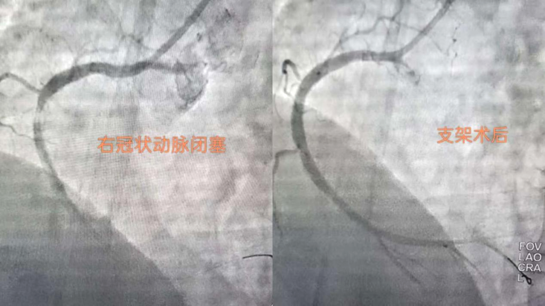 搶時間就是搶生命!06:46穿刺,06:47成功,06:49冠脈造影明確:右冠狀動脈中段完全閉塞。導(dǎo)絲迅速通過,支架精準(zhǔn)植入,07:03血流恢復(fù),手術(shù)成功結(jié)束?;颊咝赝疵黠@緩解,生命體征趨于平穩(wěn)。從入院到血管再通,不到兩小時。
