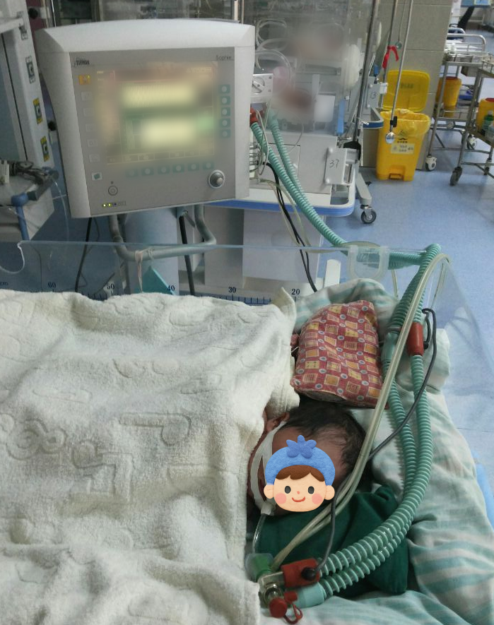 患兒入院后,NICU團隊立即啟動危重新生兒搶救預案。經快速檢查,初步診斷為宮內感染所致的足月兒急性呼吸窘迫綜合征(ARDS),該疾病極易合并肺高壓、氣胸、肺出血、呼吸衰竭等嚴重并發(fā)癥,屬于新生兒急危重癥,救治難度極大。團隊立即按新生兒ARDS診療規(guī)范進行氣管內給予肺表面活性物質,循環(huán)支持,抗感染、持續(xù)機械通氣、營養(yǎng)支持等對癥治療。然而,由于原發(fā)疾病嚴重,患兒經歷7天機械通氣后,病情出現(xiàn)反復,肺部影像學顯示雙肺實變明顯,脫氧撤機困難。