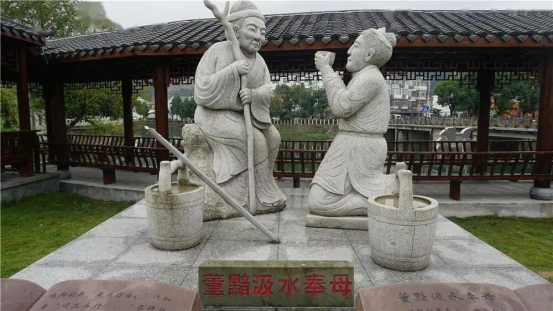 董黯事母至孝,因母親思飲清泉,每日往返20余里汲水奉親,其母子深情打動鄉(xiāng)鄰,人們將其取水的溪流命名為“慈溪”,成為今浙江慈溪市的由來。