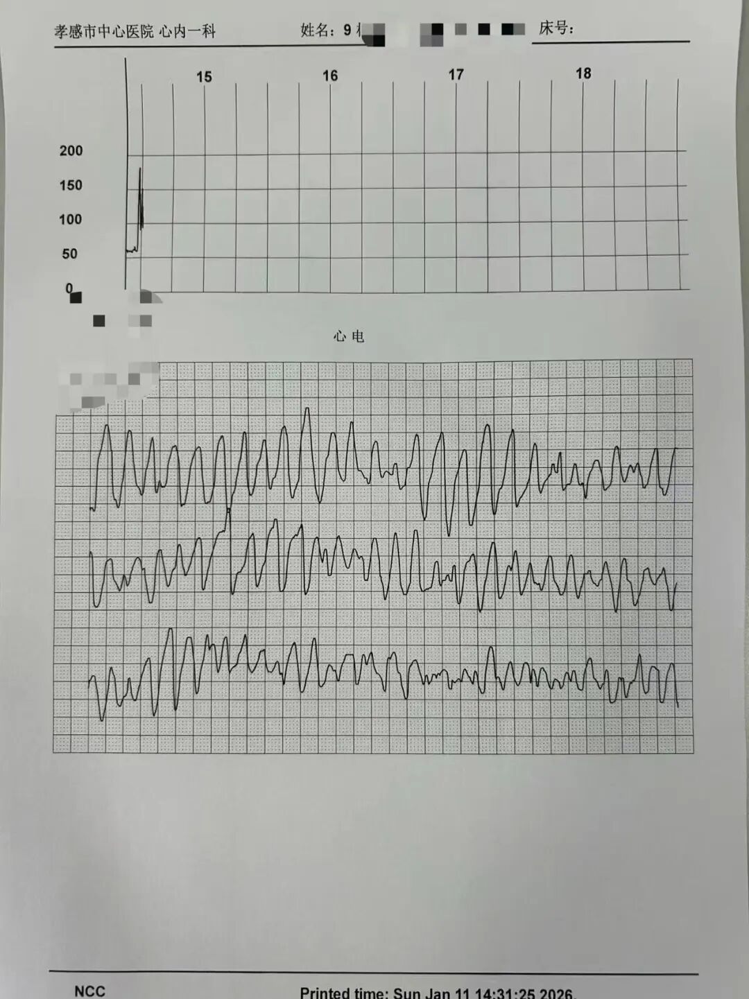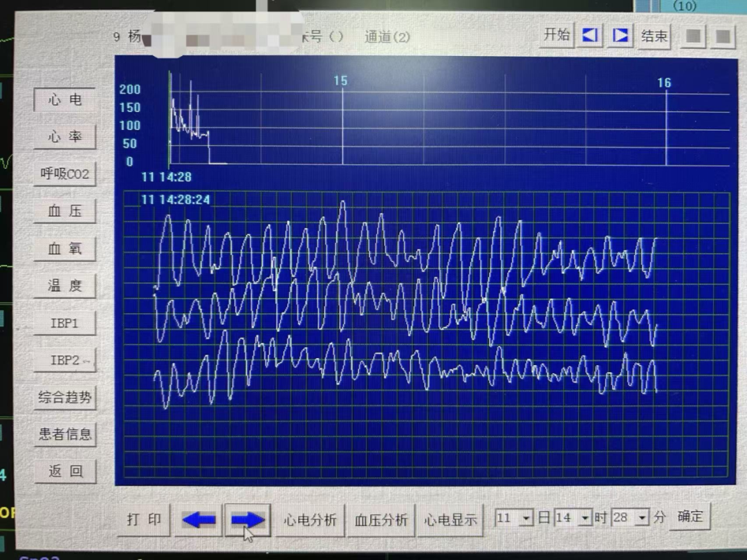 當(dāng)日14時28分,心血管內(nèi)科責(zé)任護(hù)士李文秀如往常一樣,專注地監(jiān)測著遙測心電監(jiān)護(hù)儀。突然,一陣急促而不規(guī)則的警報聲響起——那是9床楊婆婆的遙測心電監(jiān)護(hù)儀發(fā)出的警報。李文秀瞬間將目光鎖定屏幕,只見原本規(guī)律的心電波形已變?yōu)殡s亂無章的“蚯蚓狀”,這是最危險的心律失常之一:心室顫動(室顫),意味著心臟已失去有效泵血功能,患者生命正以秒為單位流逝。