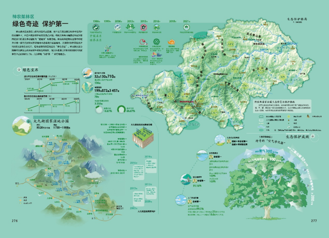 該圖集由湖北省自然資源廳統(tǒng)籌實(shí)施,湖北省地圖院五年醞釀,5年精心設(shè)計編制,包含139幅專題地圖、351個統(tǒng)計圖表、2630個統(tǒng)計數(shù)值、62個生態(tài)文明建設(shè)典型案例?!斑@部地圖集從人文地理、資源稟賦、保護(hù)治理、城市新篇四個維度,充分展現(xiàn)了湖北省豐富的自然資源和生態(tài)文明建設(shè)的新成就?!弊鳛樵搱D冊的指導(dǎo)專家,王家耀院士、郭仁忠院士對地圖集給予高度評價。