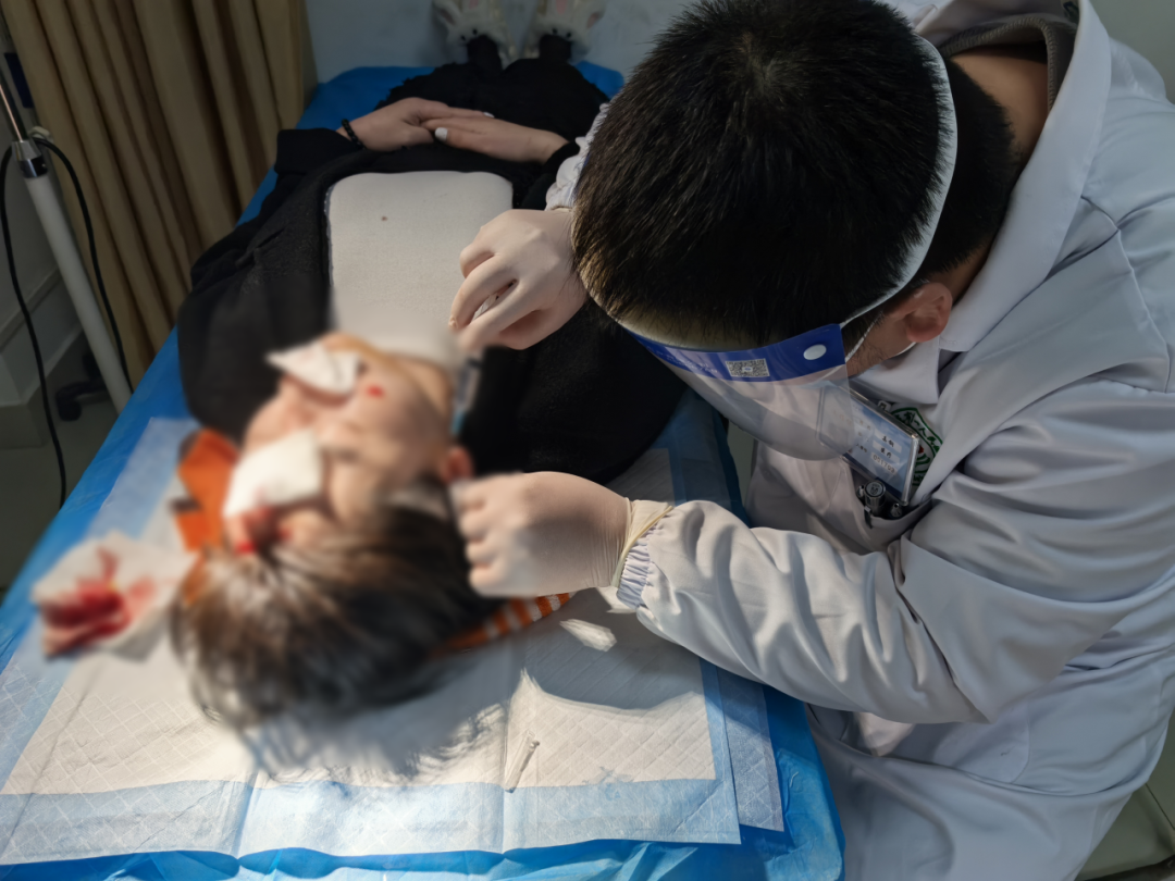 面部作為人體血管、神經(jīng)最為豐富的區(qū)域,既是容貌的核心部位,也關(guān)乎多項面部功能。此類嚴(yán)重傷口若未及時接受規(guī)范處置,不僅極易引發(fā)傷口感染,還可能遺留明顯疤痕,甚至損傷面部神經(jīng),影響面部活動功能。為搶抓最佳治療時機,護士第一時間啟動動物致傷專用處置通道,直接將患者引導(dǎo)至獨立、設(shè)備齊全的動物致傷處置室,有效避免了患者在普通診區(qū)等待造成的傷口暴露污染和交叉感染風(fēng)險,為后續(xù)精準(zhǔn)治療贏得了寶貴時間。