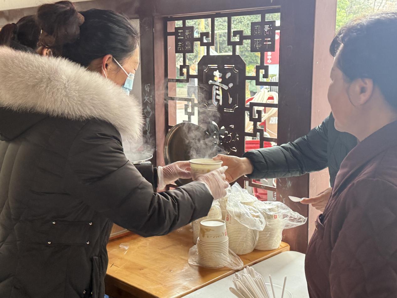 活動現(xiàn)場,志愿者們分工明確、默契配合,現(xiàn)場直接煮制湯圓,沸騰的鍋具旁暖意融融,濃郁的香甜氣息很快彌漫在清風(fēng)廉廊。湯圓煮好后,志愿者們迅速分裝,第一時(shí)間將一碗碗熱氣騰騰的湯圓送到現(xiàn)場居民手中,尤其對老年群體格外關(guān)照,主動為行動不便的老人遞上湯圓、送上問候。“湯圓甜,心里更甜!感謝社區(qū)和志愿者們,讓我們感受到了家的溫暖?!苯舆^湯圓的居民連連稱贊,臉上洋溢著幸福的笑容。