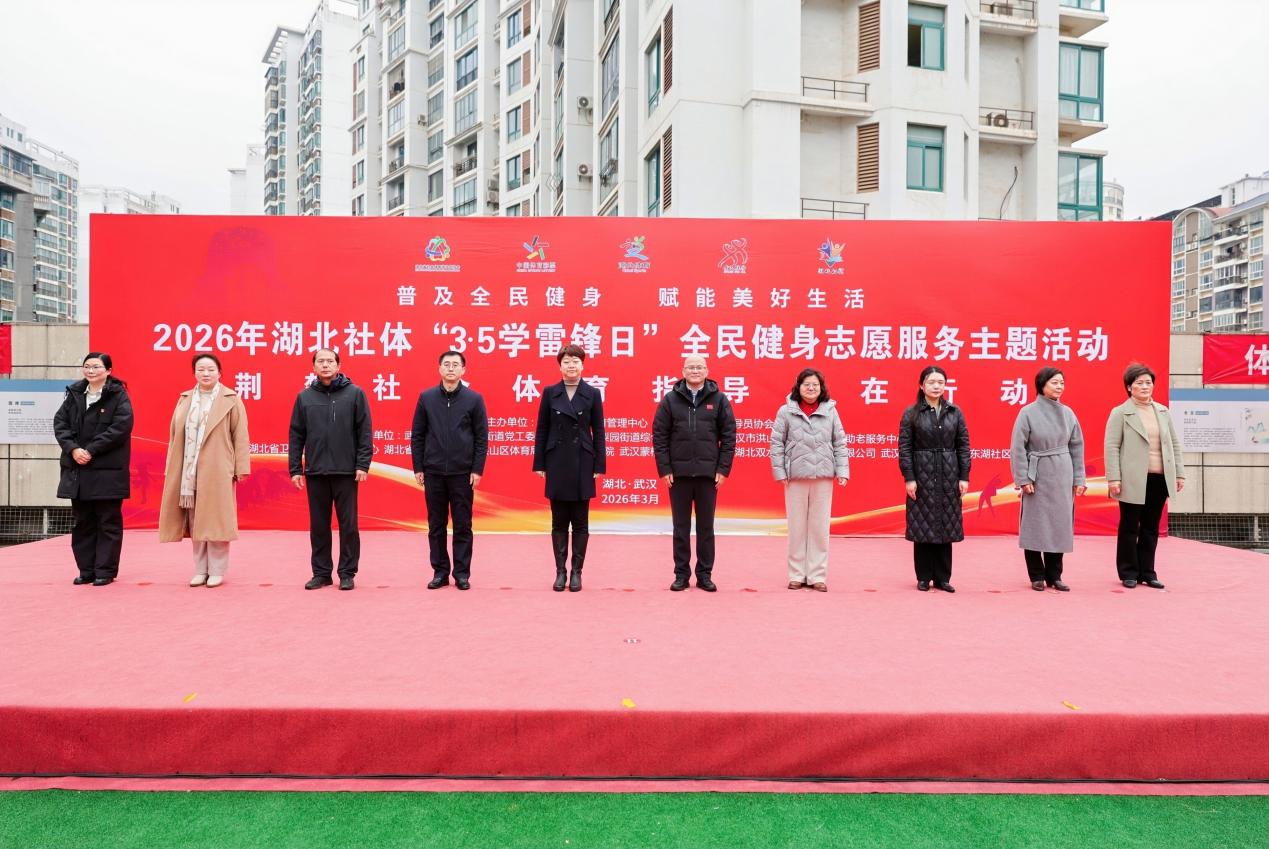 3月2日上午,2026年湖北社體“3?5 學(xué)雷鋒日”全民健身志愿服務(wù)活動(dòng)在武漢市洪山區(qū)東湖社區(qū)成功舉辦。本次活動(dòng)由湖北省社會(huì)體育管理中心、湖北省社會(huì)體育指導(dǎo)員協(xié)會(huì)主辦,武漢市洪山區(qū)梨園街道黨工委、武漢市洪山區(qū)梨園街道綜合養(yǎng)老服務(wù)中心、武漢市洪山區(qū)梨園街康益壽助老服務(wù)中心承辦,并得到湖北省衛(wèi)生健康宣傳教育中心、湖北省直播電商協(xié)會(huì)等多家單位的支持,吸引了500余名社區(qū)居民及周邊的全民健身愛好者激情參與。