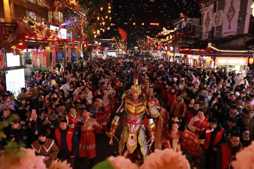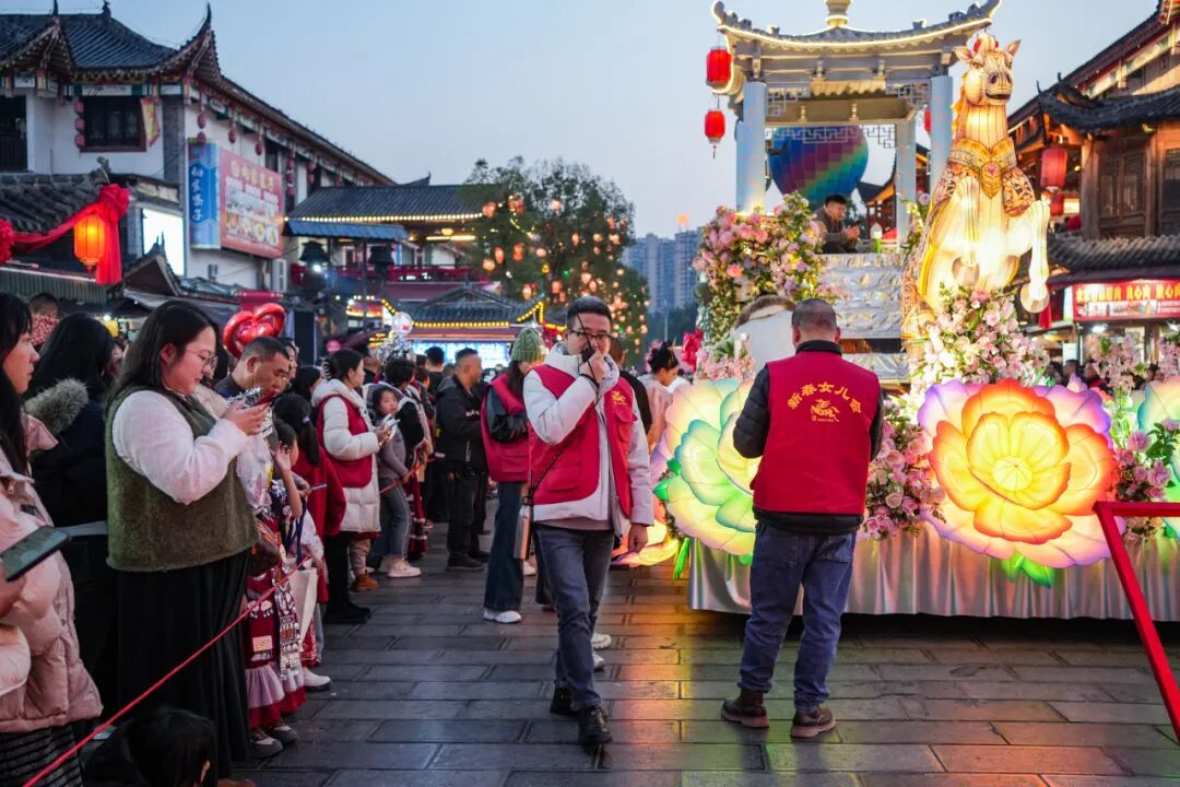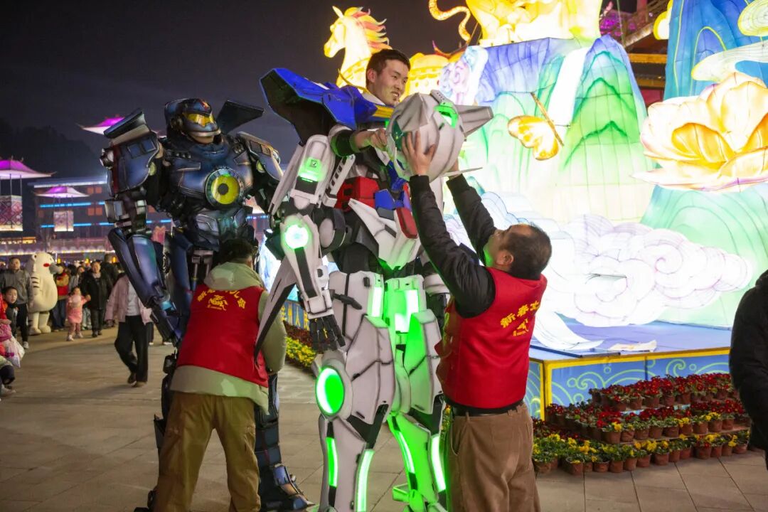 而最讓萬(wàn)人空巷的,是那一場(chǎng)場(chǎng)花車(chē)、機(jī)甲、年獸大巡游。堪稱(chēng)視覺(jué)C位的花車(chē)緩緩前行,當(dāng)傳統(tǒng)年獸與現(xiàn)代機(jī)甲并肩,人們追逐著巡游隊(duì)伍,眼里閃爍著好奇與驚喜,讓團(tuán)圓的定義有了最鮮活的畫(huà)面。