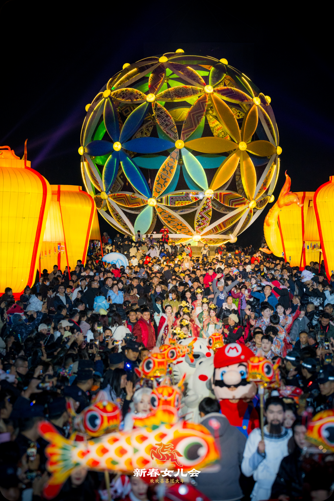 走進(jìn)新春女兒會(huì)的現(xiàn)場(chǎng),便是走進(jìn)了一個(gè)光與影編織的綺夢(mèng)。26盞主題燈組,從繡球廣場(chǎng)蜿蜒至比茲卡大街,最終匯聚于女兒廣場(chǎng)的璀璨舞臺(tái)。31個(gè)特色點(diǎn)位,一步一景,步步生情。高達(dá)12米、長(zhǎng)逾20米的主燈“山海尋夢(mèng)”橫亙夜空,恢弘之下,仙女的飄帶輕舞飛揚(yáng)。那不是簡(jiǎn)單的光亮,那是土家兒女用光影寫(xiě)就的邀請(qǐng)函。