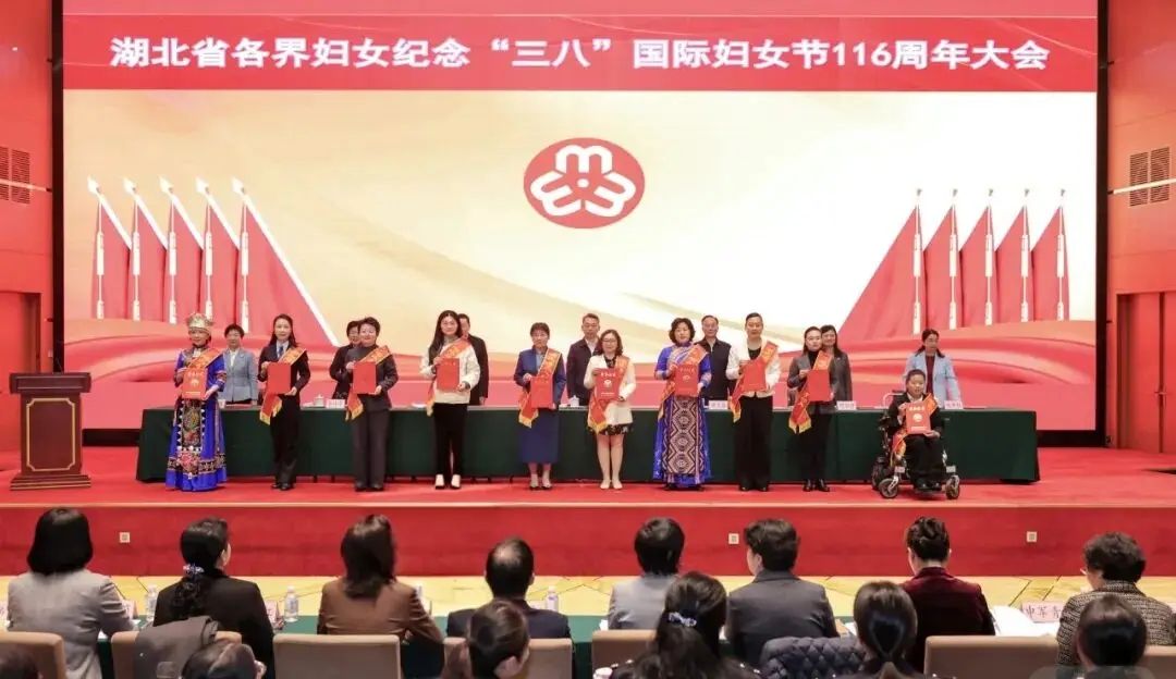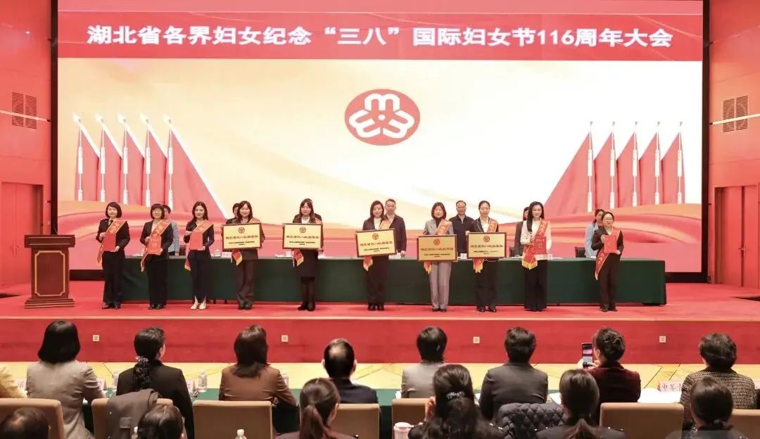 會議為獲得2024-2025年度湖北省三八紅旗手標(biāo)兵、三八紅旗手、三八紅旗集體代表進(jìn)行頒獎。