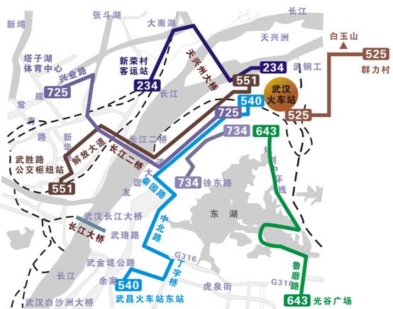 據(jù)悉,春運(yùn)期間,將根據(jù)客流變化情況,調(diào)整增加武漢站上述7條公交線(xiàn)路運(yùn)力,還將開(kāi)通武漢站至漢口站的大站快車(chē)線(xiàn)路。走向?yàn)椋何錆h站經(jīng)白云路、團(tuán)結(jié)大道、建設(shè)十路、友誼大道、長(zhǎng)江二橋、黃浦大街、發(fā)展大道、常青路至漢口站。