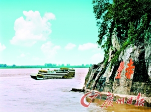 在赤壁縣城西邊的赤壁古戰(zhàn)場,如今依然江水滔滔。當年“赤壁之戰(zhàn)”,經(jīng)此一役,定下三分天下格局。李白詩曰:“二龍爭戰(zhàn)決雌雄,赤壁樓船掃地空。烈火張?zhí)煺赵坪,周瑜于此破曹公。”夕陽西下,紅色的陽光灑在江面上,怎不讓人想起那烽火連天的三國?