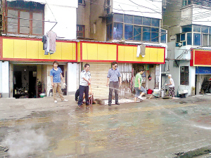 在武昌楊園路,市民劉先生昨天拍到了城管清洗路面的場(chǎng)景。劉先生說(shuō),這里一些餐飲攤子常年占道經(jīng)營(yíng),好好的人行道變成了黑色人行道。最近幾天,城管人員反復(fù)清洗被污染的路面:堿水泡、鏟子鏟、多功能路面去污機(jī)洗刷、清水沖洗,18般“武藝”都使出來(lái)了,挺不容易,要“贊”一個(gè)。(右上圖)